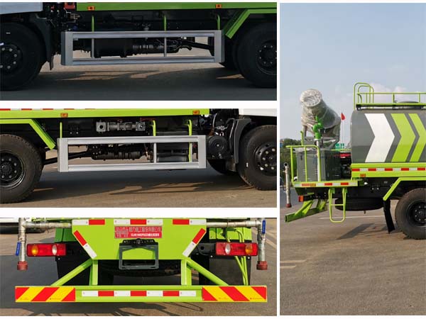 沖水距離在20米以上,射程30米以上,每分鐘1000轉(zhuǎn),自吸高度7米。 前噴、后灑一般用于沖洗街道,起除塵和降溫作用,可以用調(diào)節(jié)噴嘴螺紋的方法改變噴水器 的方向和角度。 高射水炮可以用于城鄉(xiāng)園林綠化及應(yīng)急消防。 側(cè)噴可以沖洗護(hù)欄,給路旁綠化加水,起到一車多用的作用。