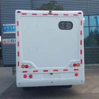 車身可噴涂或粘貼宣傳文字,標識;車內(nèi)設有桌椅,睡具,炊具,衛(wèi)生設施及必要的照明和空氣調(diào)節(jié)等設施。選裝車后部無窗戶結構,右側車門后置,后爬梯,右側窗戶變化,選裝車廂左右兩側注水艙門和外接電源艙門,外置沐浴裝置,車廂兩側散熱格柵;可不裝頂置空調(diào);ABS系統(tǒng)控制器型號 :BOSCH ABS8, ABS 系統(tǒng)控制器生產(chǎn)企業(yè) : 博世汽車部件 ( 蘇州 ) 有限公司;選裝外形尺寸以及后部燈具位置變化。